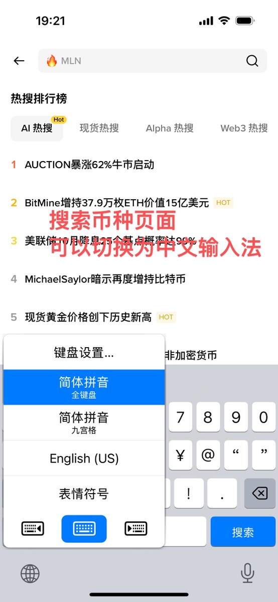 如图1,在搜索币种的页面,我可以正常切换为中文输入法,也就是假设上线后我是可以正常搜索并完成交易的。