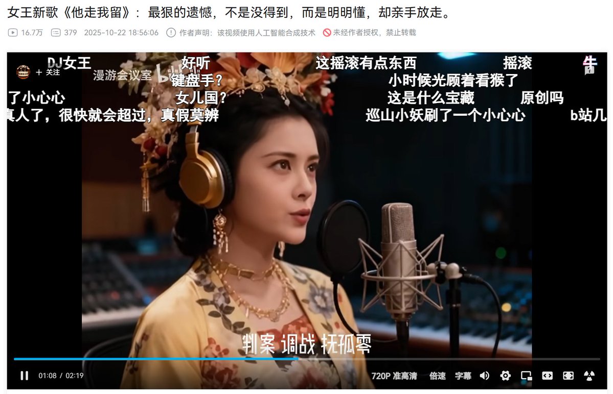 看了几个最新的AI唱歌 突然感觉华语音乐有救了😂 女儿国国王唱给唐僧的歌: 猪八戒唱的高老庄: