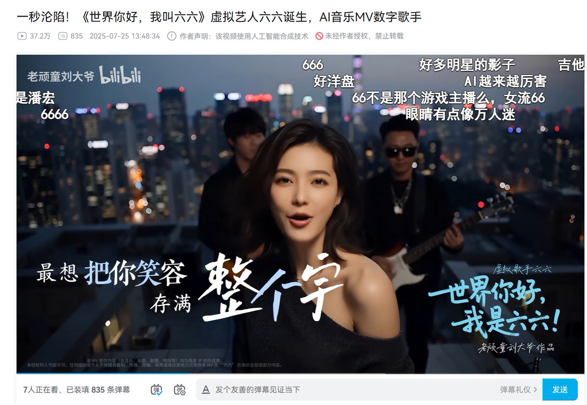 最近AI唱歌技术是不是突破了? 一下多了好多成体系的AI歌曲 下面这个虚拟艺人六六也不错