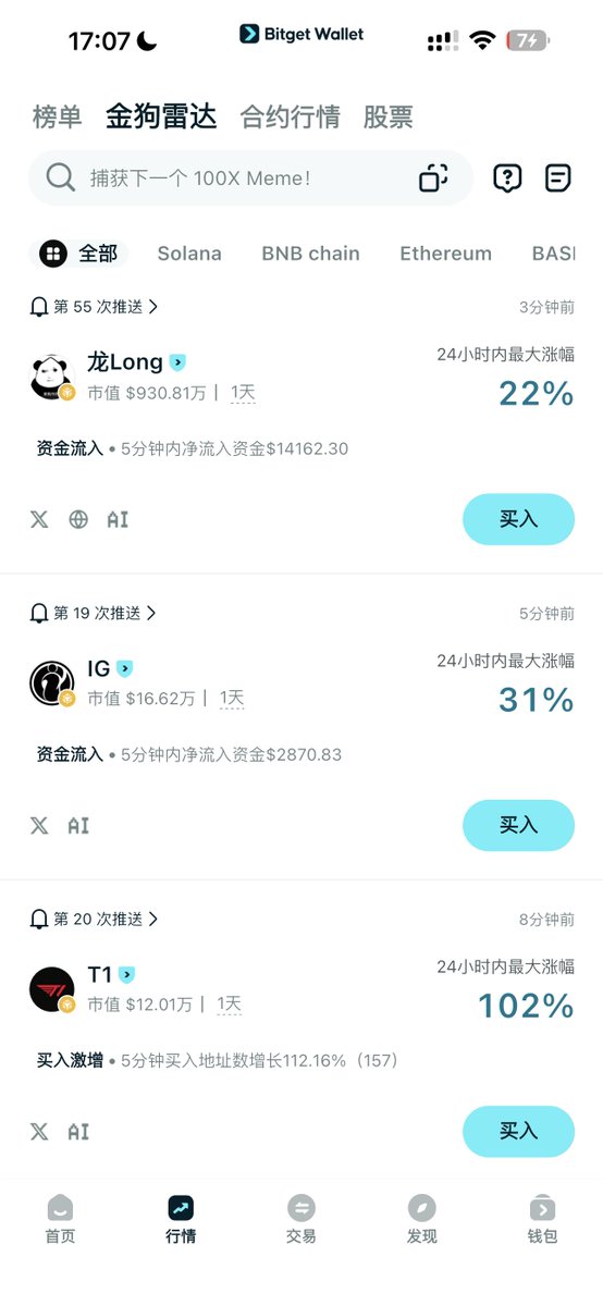 打开bg钱包看看hot picks榜单和金狗雷达行情,