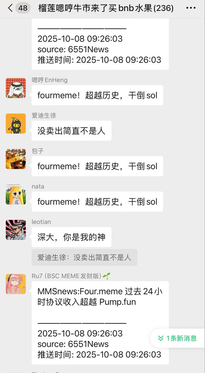 刚刚,@four_meme_ 收益在过去24小时超过了@pumpdotfun 成为新的链上巨头‼️