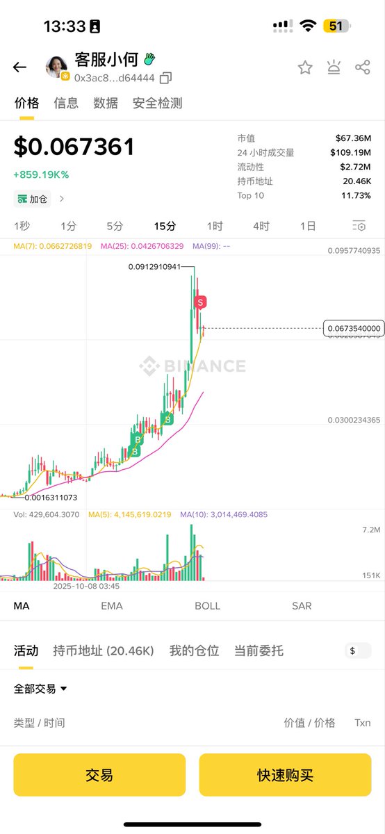 回顾这段时间,我曾因对Meme的偏见,踏空了BNB Chain上的多个机会。比如“币安人生”在0.04时我没看懂、没研究,后来在 @brc20niubi 和多位大V的持续宣传下才关注到。现在它已突破9000万美元市值,成为首个冲上新高、真正出圈的中文Meme。