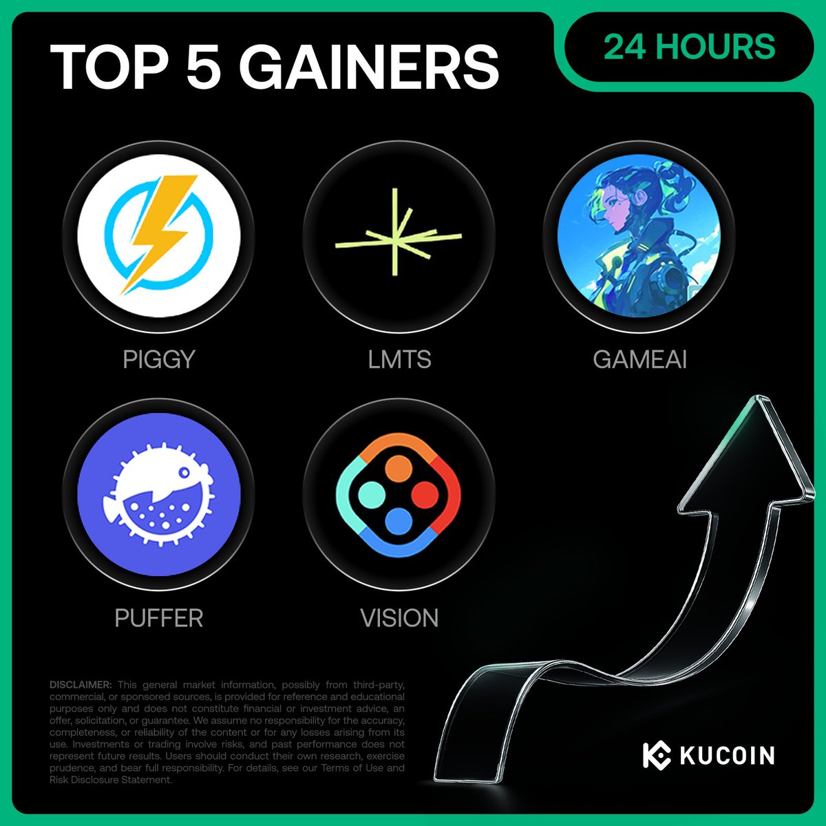 🚀 #KuCoin 24 小时涨幅前 5 名(2025 年 10 月 29 日)