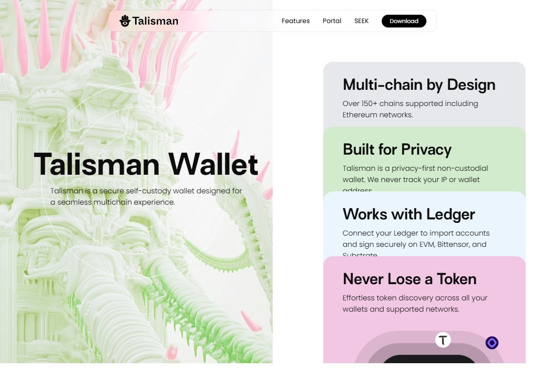 最近,Talisman 又推出了一些令人兴奋的更新:Solana 支持上线,全新官网发布,以及内置的 DeFi 投资组合追踪器,让用户可以轻松查看资产分布与收益状况。这些更新让钱包功能更加完善,也更加贴合现代用户的需求。