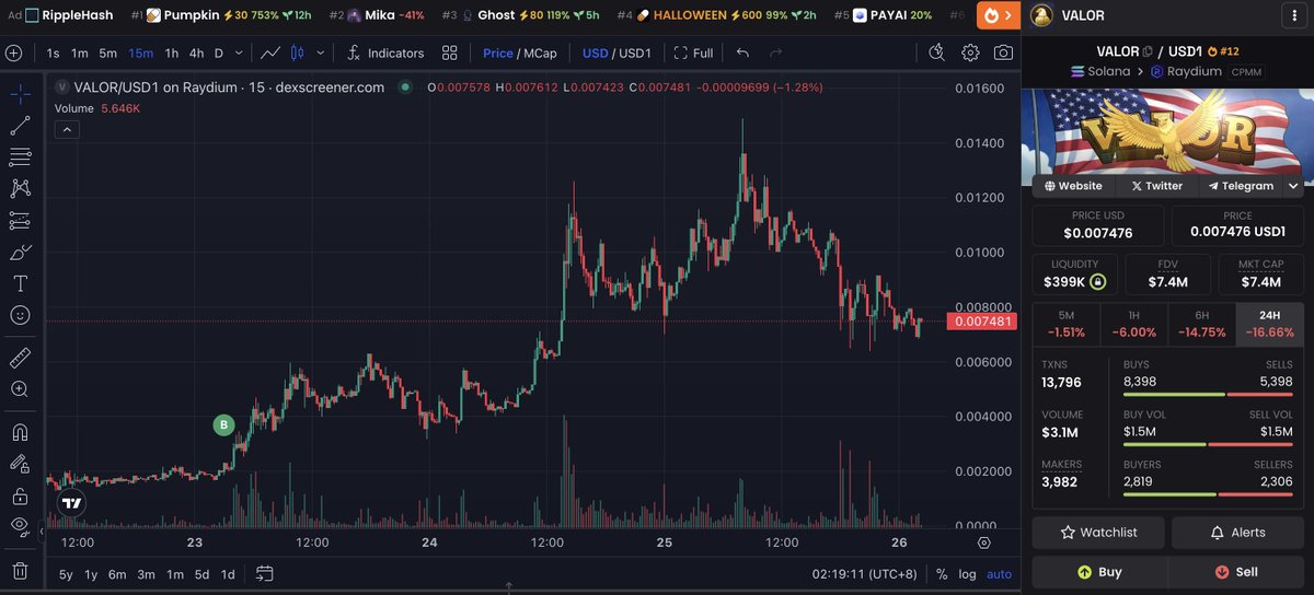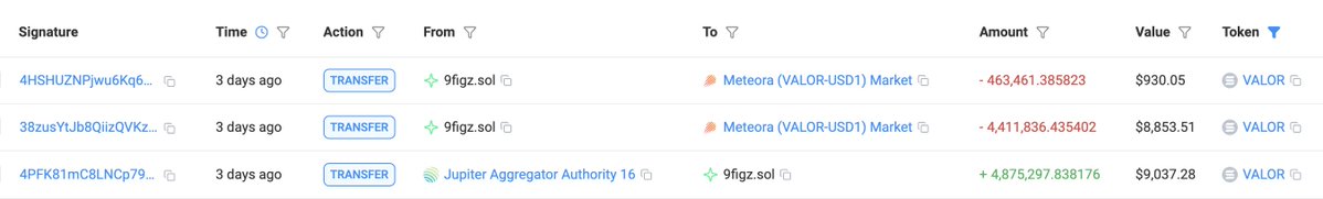 ogle(@cryptogle),顾问@worldlibertyfi,花费 10,000 美元购买了 487 万美元 VALOR 并将其添加到 Meteora (VALOR-USD1) 流动性池中。