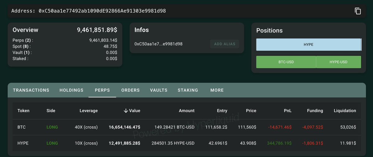 聪明的交易者 0xc2a3 拥有 100% 的胜率,不仅增加了他的 BTC 多头头寸,还在 SOL 上开设了 10 倍多头头寸。