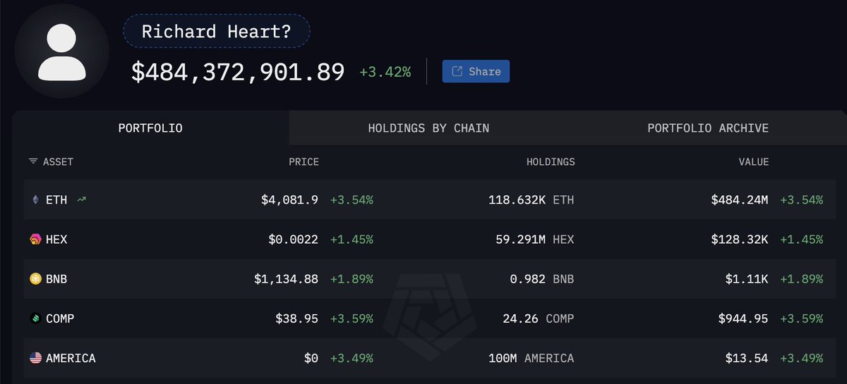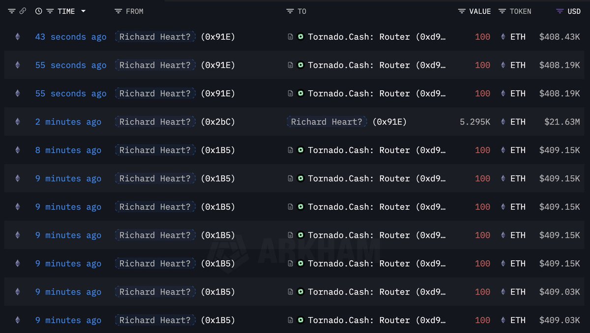 Richard Heart(@RichardHeartWin,HEX、PulseChain 和 PulseX 的创始人)再次存入 ETH 美元!