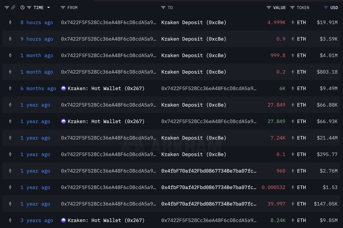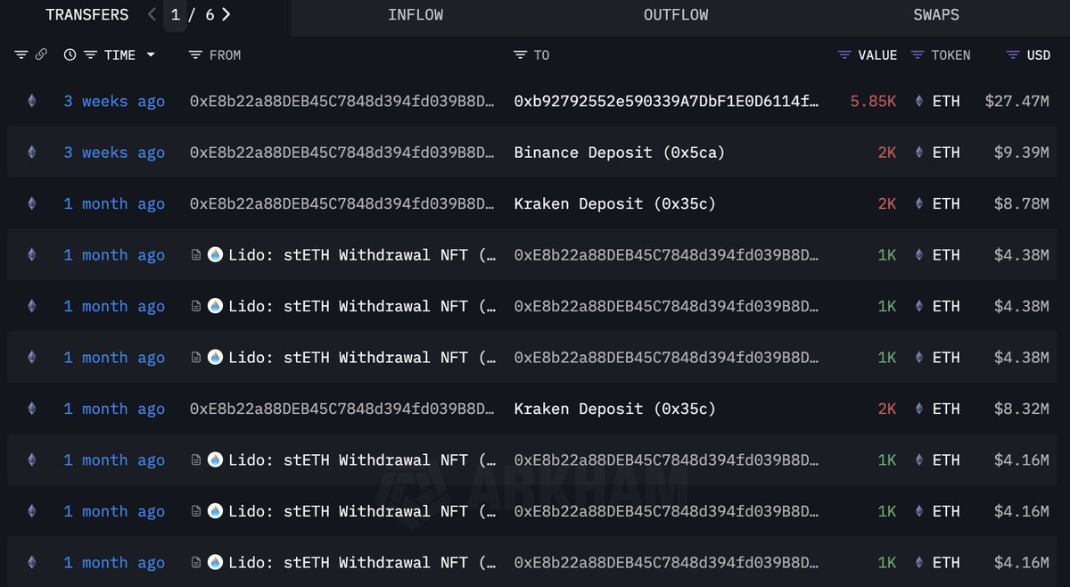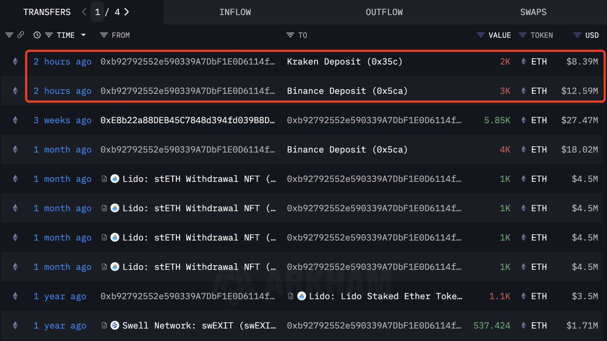 在过去一小时内,他已将 25,000 美元 ETH(1.02 亿美元)存入