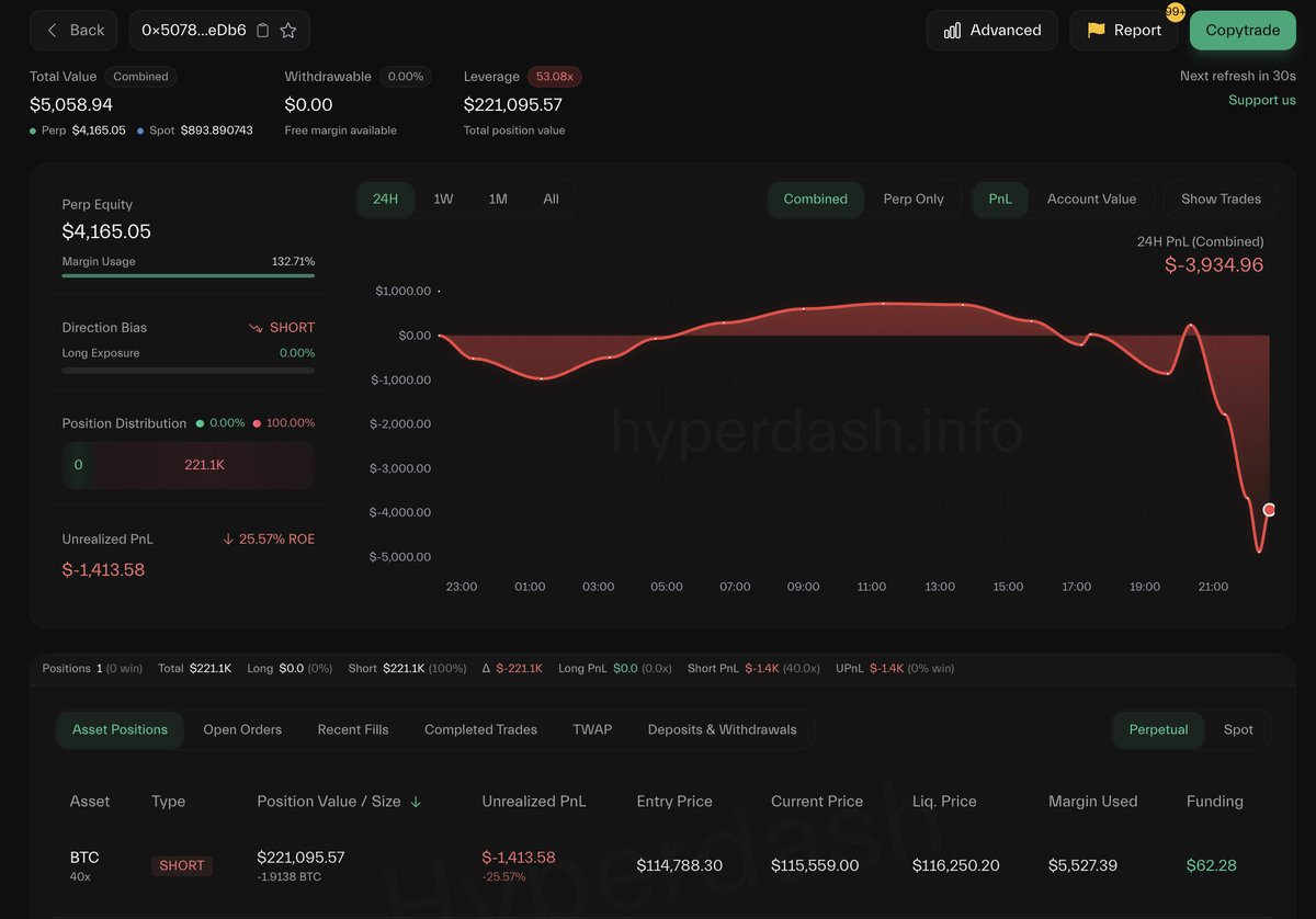 交易者 0xddc7 的胜率为 80%,但他的 668 美元 BTC(7680 万美元)空头头寸现在面临着超过 330 万美元的未实现损失。