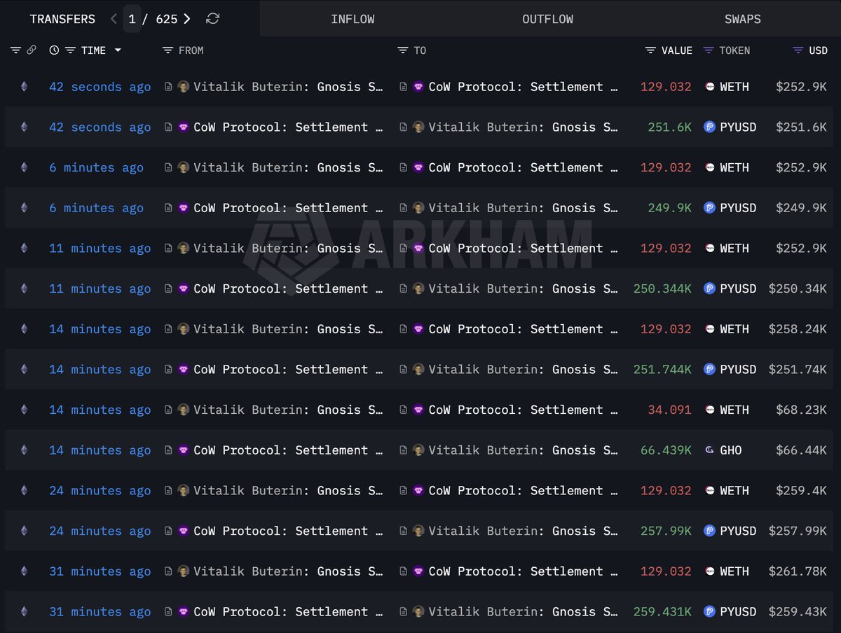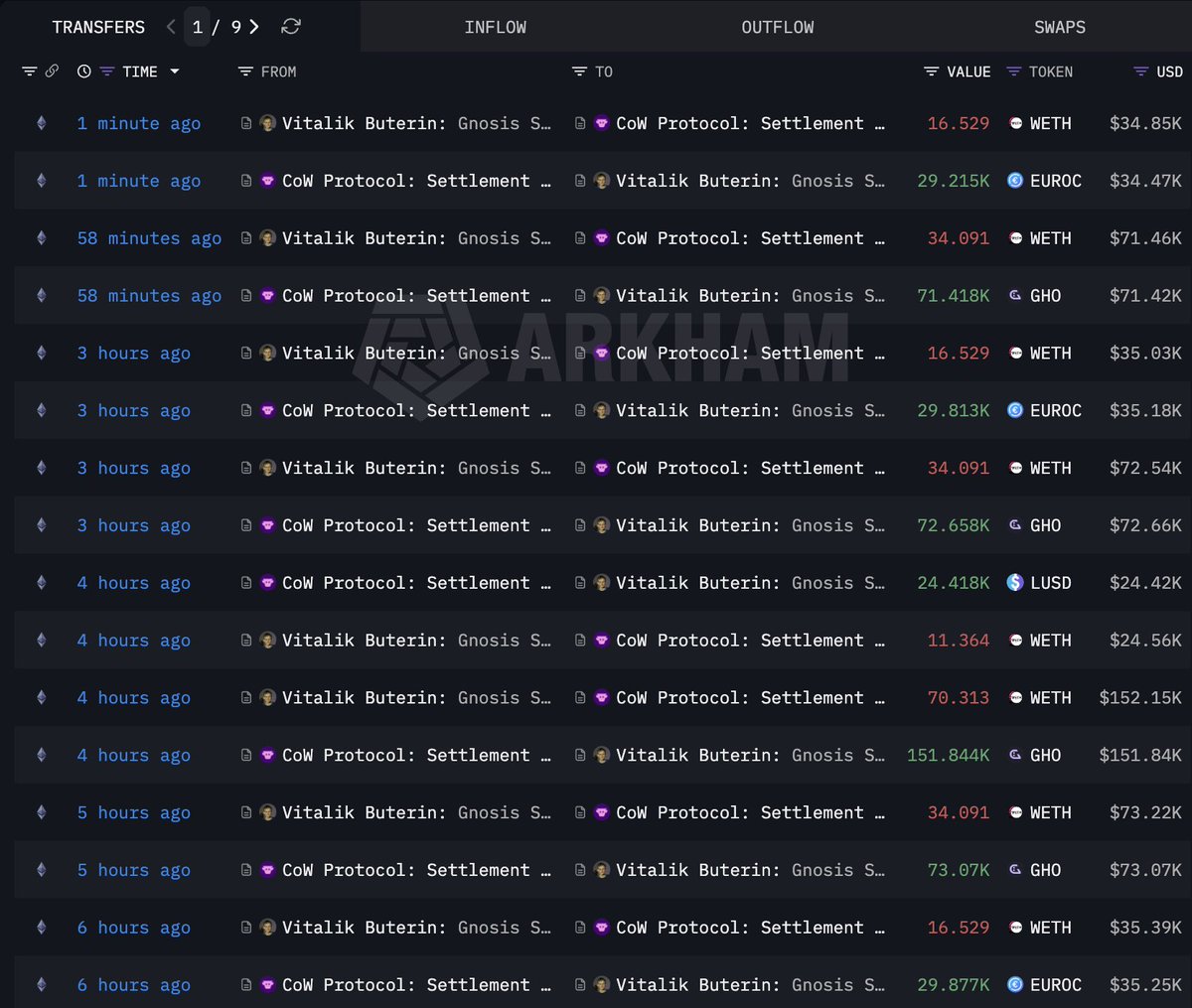 vitalik.eth(@VitalikButerin) 正在快速抛售 ETH!