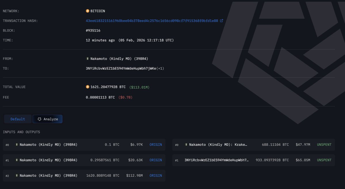 #Bitcoin 财务公司 Nakamoto(@nakamoto) 此前积累了 5,400 美元 BTC(3.764 亿美元),刚刚将 933 美元 BTC(6500 万美元)转移到新钱包。
