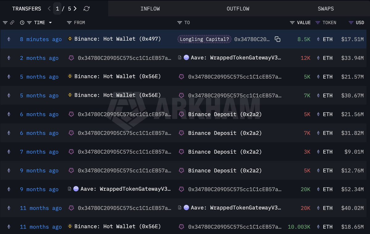 大约 30 分钟前,他将 24,452 美元 ETH(5005 万美元)存入#Binance,还剩下 56,528 美元 ETH(1.153 亿美元)。