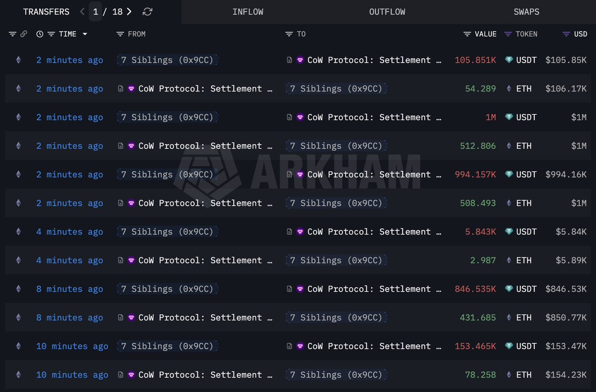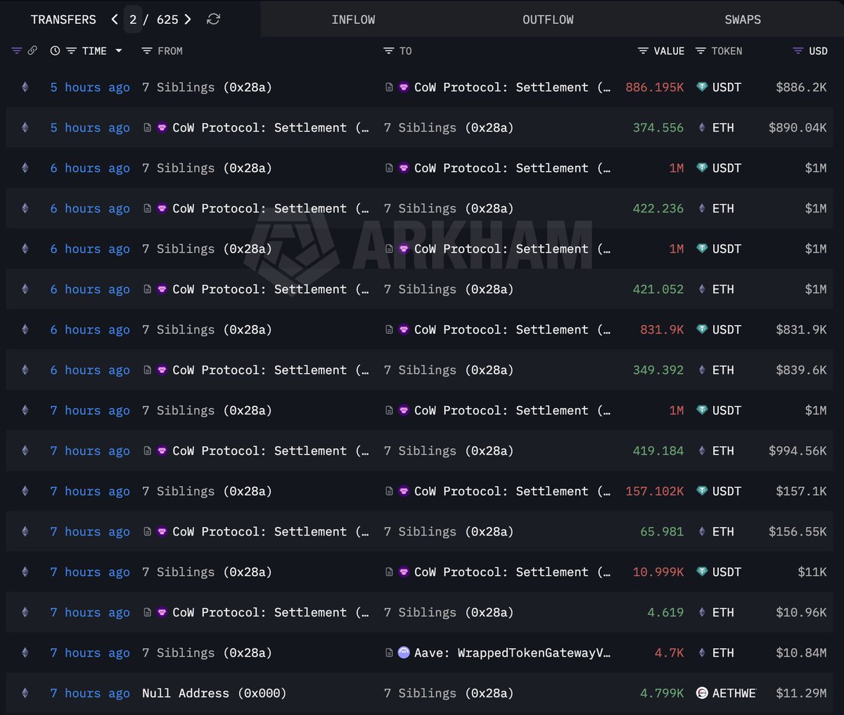 在过去 3 天里,他以 2,140 美元的平均价格出售了 6,183 美元 ETH(1324 万美元)。