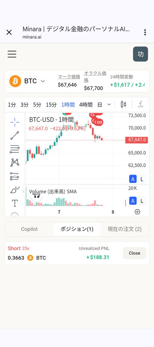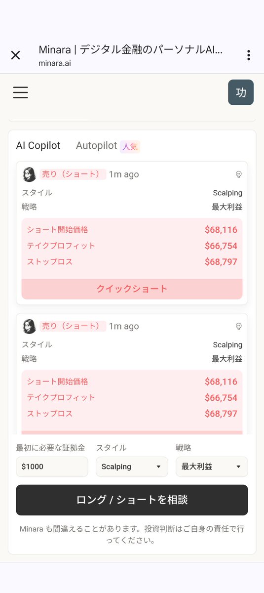 ショート脳に見えたMinara AI、ようやくロングもし始めて朝から利益作ってきてくれてますね!