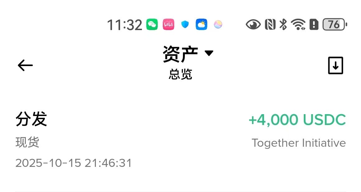 今天一早,币安账户多出4000USDC。虽虽然资金不多,但这笔“意外回流”,在我心里还是感恩的 。