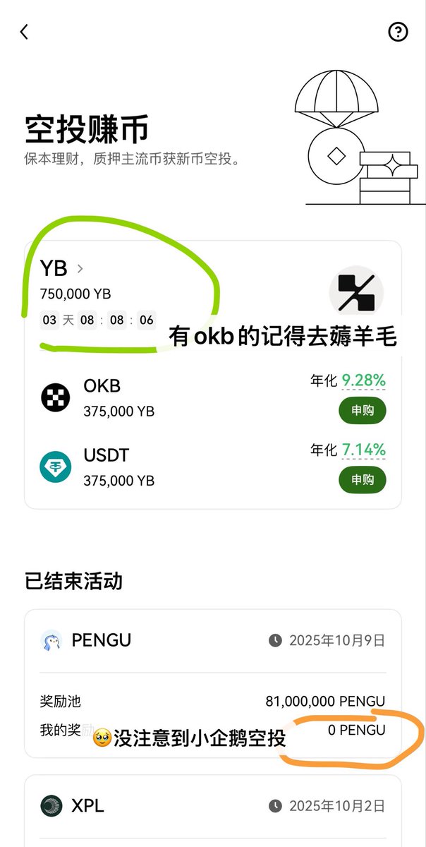看到倪大发的 #okb空投 ,才注意到 #OKX 交易所新羊毛活动!差一点错过了,还好还有3天半时间给我撸!