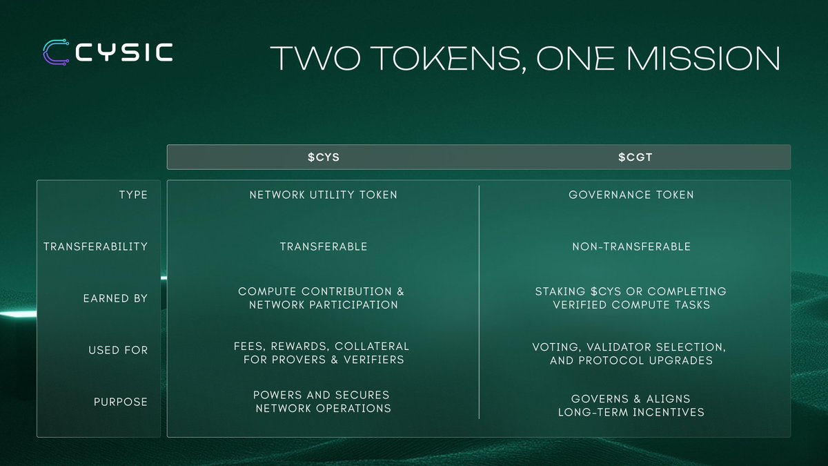 证明者贡献算力获得$CYS奖励,验证者检查正确性获得 $CYS +$CGT双重收益。