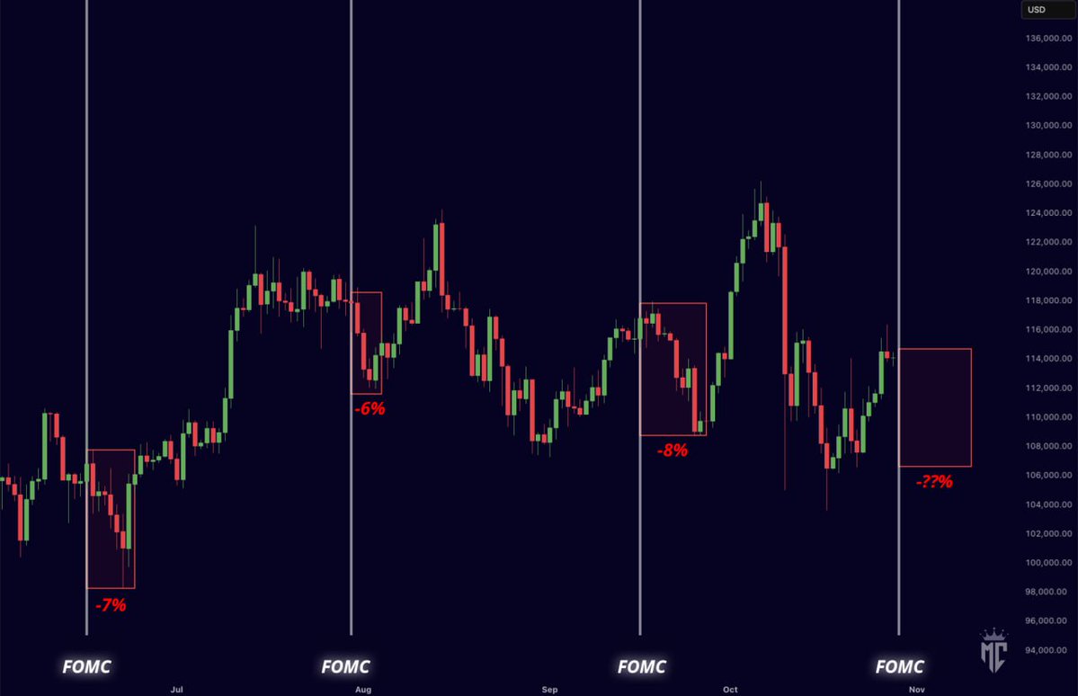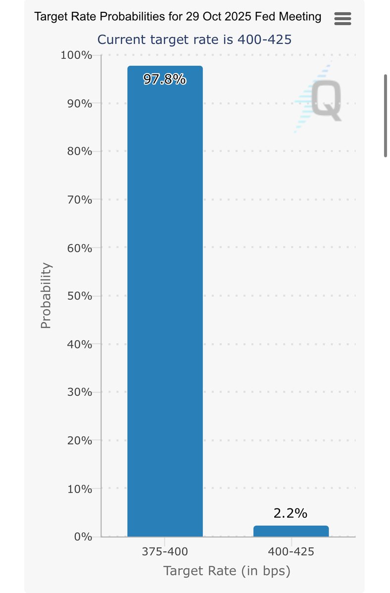 FOMC 会议时间为今天下午 2:30(美国东部时间)。 降息几率为 98%。 为波动做好准备!