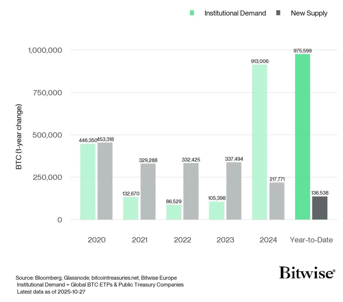 机构需求是正在开采的比特币新供应量的 7.2 倍。 跟随聪明的钱!