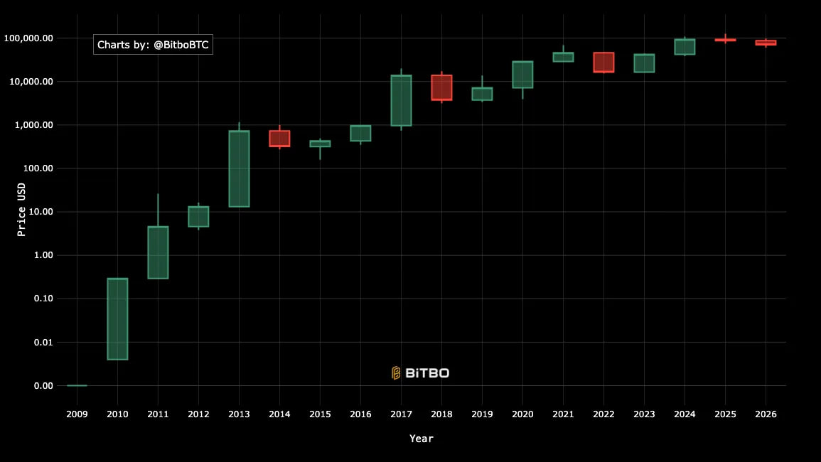 历史上我们从未见过连续两支红色的年度蜡烛。 这可能是第一次。