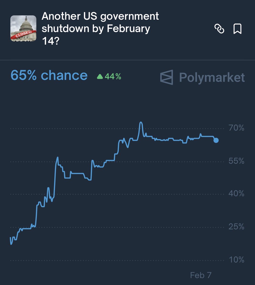 突发新闻:美国政府再次关闭🇺🇸的可能性跃升至 66%。