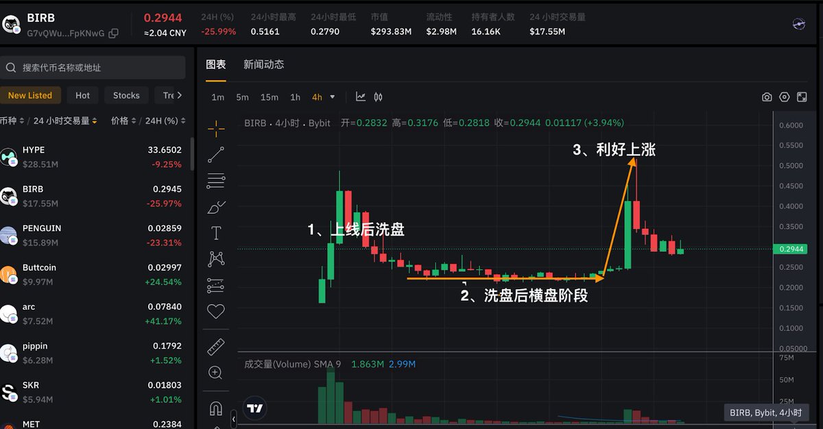 上线洗盘➔横盘➔突发利好➔暴拉大阳线
