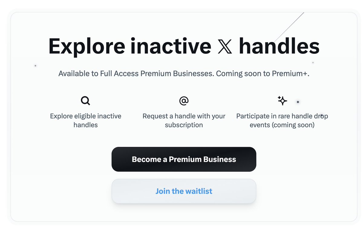 X 平台的用戶名(handles)一直是稀缺資源,尤其那些簡短、易記或具有品牌價值的如 @Music或@News