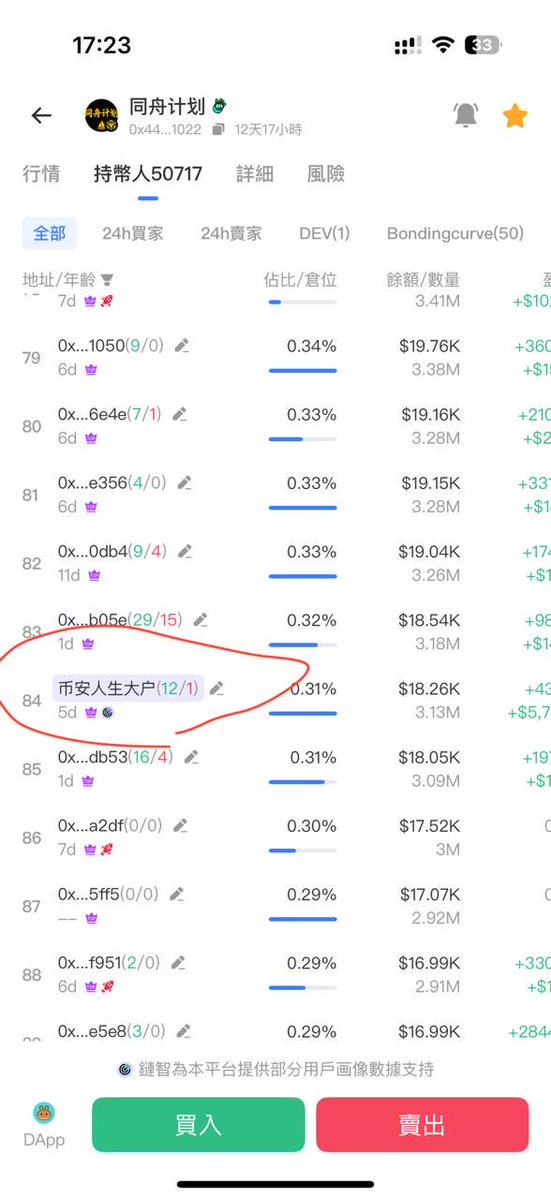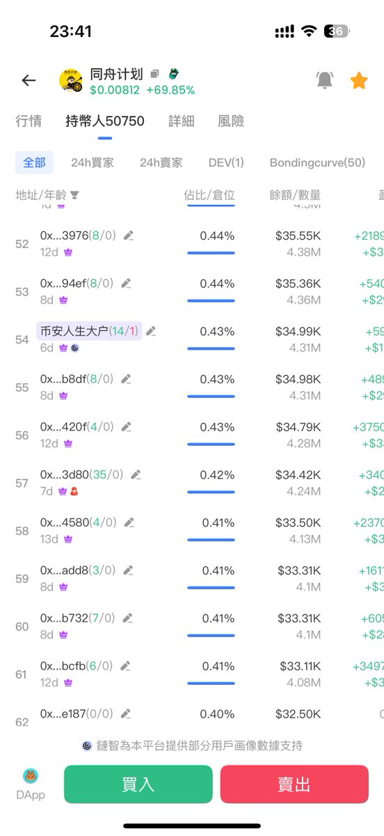 既然人家明牌拿了20 %的筹码,还天天发文 @HiddenPositions ,就不怕共同检验,难道要像某些项目方把筹码打散了,分配在小钱包里,让你没有防备的情况之下出货,两厢对比之下,我宁愿相信前者,另外有没有一种可能,他会把筹码捐出来让大家刷积分或是空投给持有者呢?