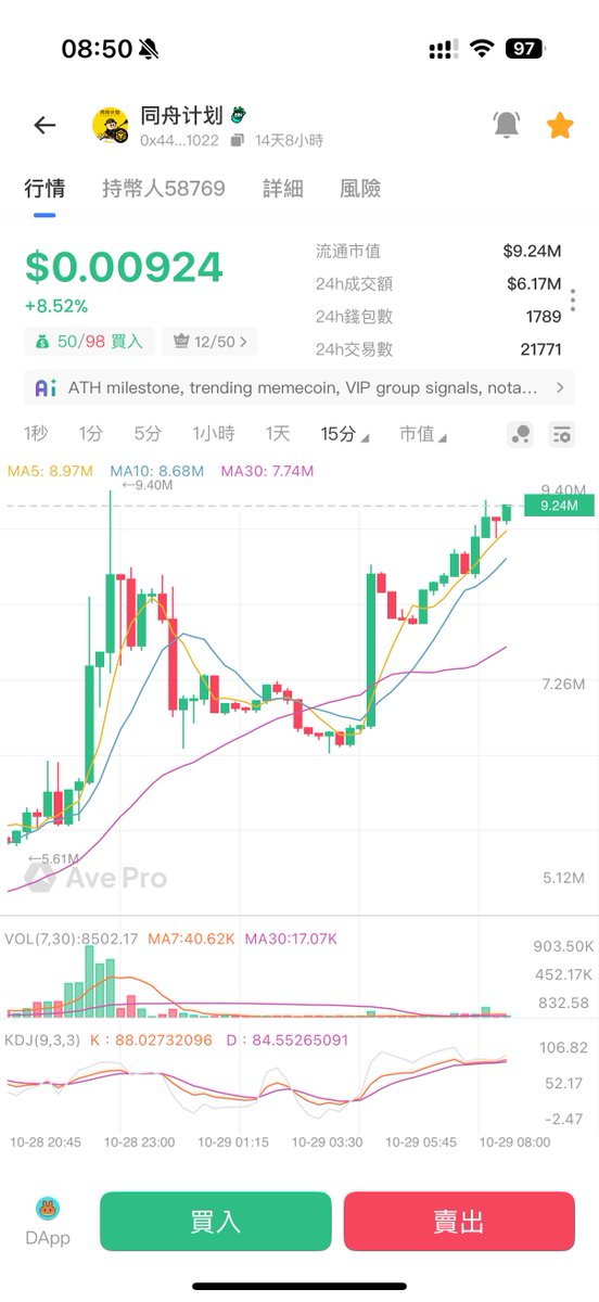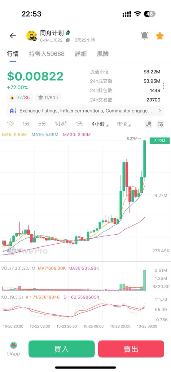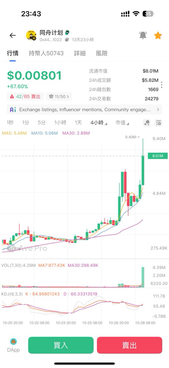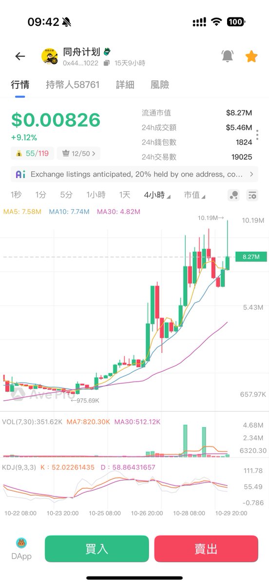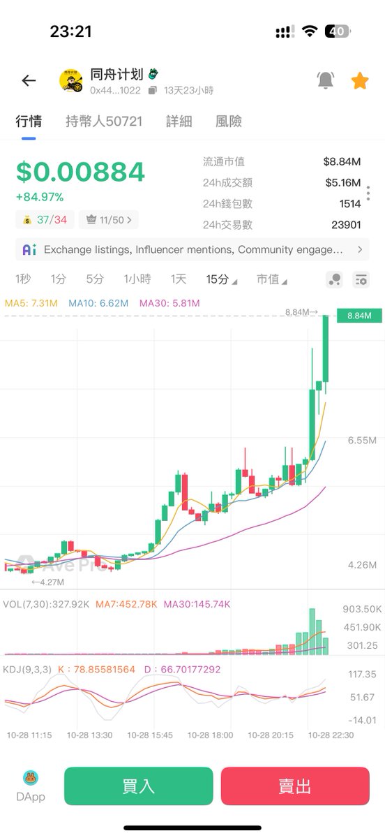 终于, $同舟计划 的市值正式突破1000万美元新高,这一刻是值得欢呼的,也打脸了很多小黑子,接下来期盼2000万市值达成,也希望能顺利上Alpha,这个成就是大家一起一步一步努力完成的,而榜一大哥也说了,一个代币都不会出,希望做空投或者是投慈善,如果能得到币安支持,全部捐出也可以。