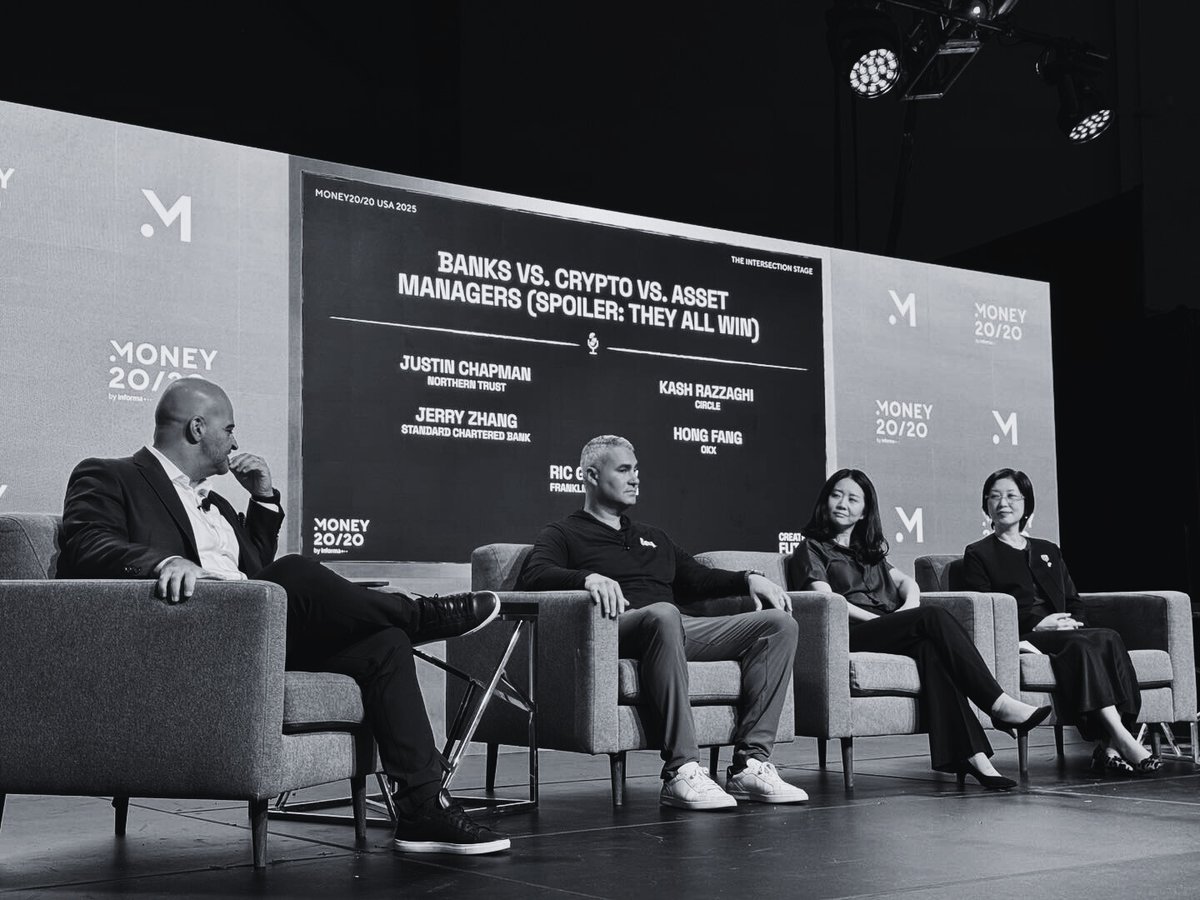 我们的总裁 @hfangca 与 Circle、Northern Trust、渣打银行和富兰克林邓普顿的领导人一起在拉斯维加斯讨论 @Money2020 的前进之路。