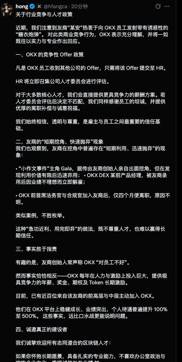 日本路边社 @_FORAB 预测的重要人士变动实锤了,X Layer公开发帖指控 001号员工 @felix_okx 违反劳动合同和职业道德,参与了和公司利益产生冲突的行为。