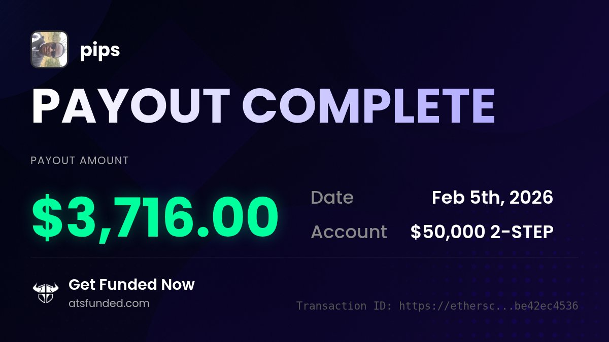over $36,400 paid out in our fourth payout cycle in just over 5 weeks, ATS traders have already been paid a total of $74,593 with an average payout of $1,913 per trader RampaGot_6 topped the leaderboard with a $5,160 payout followed by fxnction, and ziontradez stop risking https://t.co/IUbJoG4Bxn