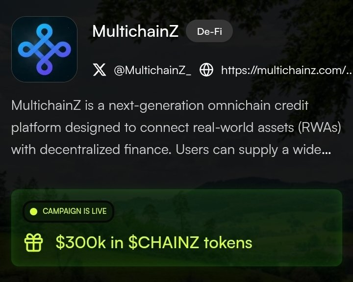 【 MultichainZ:RWA 与 DeFi 融合的信用新赛道 】 我认为Web3 的下一个战场,就在于如何无缝地连接 RWAs(真实世界资产)和 DeFi。 @MultichainZ_ 正在构建的就是这个全链(Omnichain)信用平台。 @MultichainZ_ 的核心逻辑非常强大:用户可以直接用 ETH、稳定币,甚至是 NFT 作为抵押品,就能在跨链之间无缝地借贷。 这种机制,正在将机构级资金引入 DeFi,真正打开了 RWA 的流动性。 $CHAINZ 奖励与早期布局的窗口期 现在,正是早期入场的最佳时机。 @MultichainZ_ 的 Leaderboard 已经正式在 Bantr @Bantr_fun 上线,这是一个总额高达 30 万美元的 $CHAINZ 奖励池。 这笔奖励的分配机制很值得关注:15 万美元在 TGE 时全解锁,另外 15 万美元则是为期 6 个月的质押奖金。 我认为,这种设计鼓励的是长期持有和贡献。 关键时间点和策略非常清晰: * 每月快照:针对前 200 名创作者进行月度快照。 * 奖励周期:活动将持续到 1 月 22 日。 * 增益机制:链上乘数(Onchain Multipliers)即将上线,这会进一步放大你的贡献价值。 $CHAINZ 的这波社区竞赛,是锁定早期权益的绝佳机会。 #Bantr @BitgetWallet @Bantr_fun @MultichainZ_