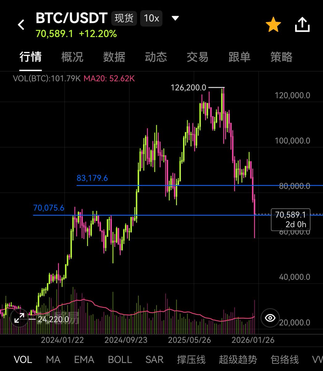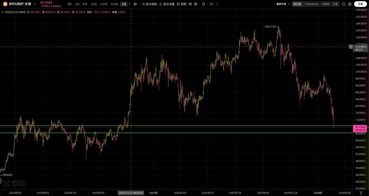 - 比特币继续暴跌 12%,跌破 65000 美元,跌破“支撑线”