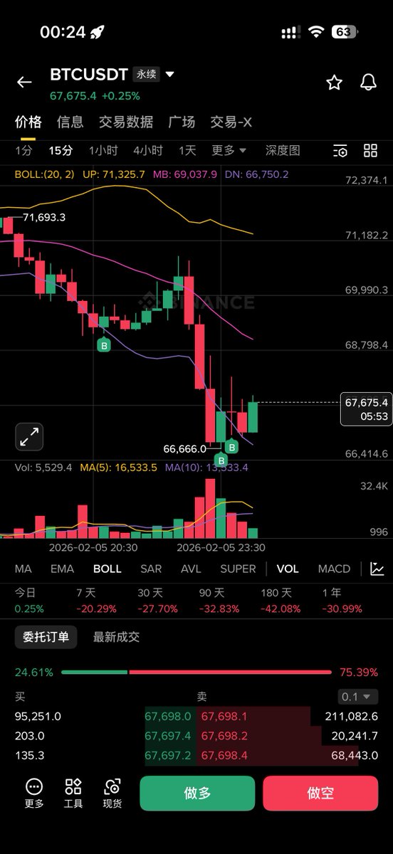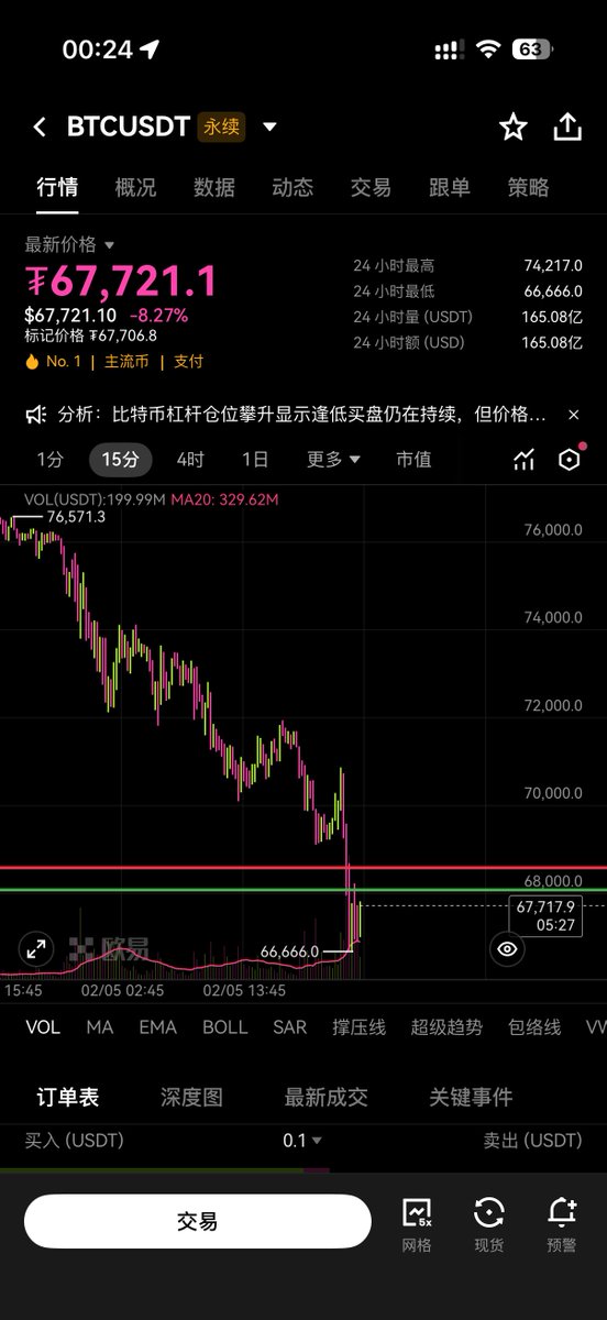 - 6.4w 非常硬,因为太多人是这个成本了,这次跌完支撑位更强了