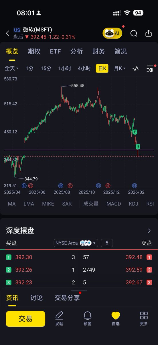- 软件股继续崩,SaaS 已经连续第 8 天下跌,跌到 2023 年 11 月以来最低,超卖程度接近历史极值
