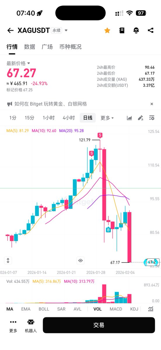 - 银价继续“闪崩” 19%,回吐这一波所有涨幅,想要解套估计需要 10 年