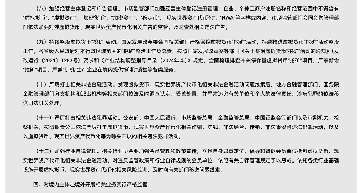 文件首次系统定义“现实世界资产(RWA)代币化”,并明确:境内开展 RWA 代币化活动,原则上禁止。
