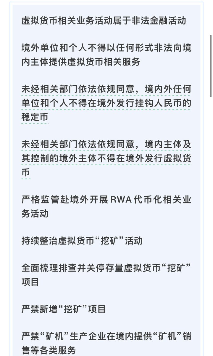 为何一方面八部委加强虚拟货币监管,然后证监会还给境内资产境外发行资产支持证券代币开了口子?昨天中国监管部门连发两份监管文件:第一份是八部委联合加强对虚拟货币监管:不得向境内主体提供虚拟货币服务、不得在境外发行挂钩人民币的稳定币、不得在境外发行虚拟货币、继续整体挖矿活动等,延续了此前一贯的高压措施。而且境外主体不允许发行挂钩人民币的稳定币、境外主体控制的境外主体不得发行虚拟货币,明显相比之前打击范围进一步扩大了。