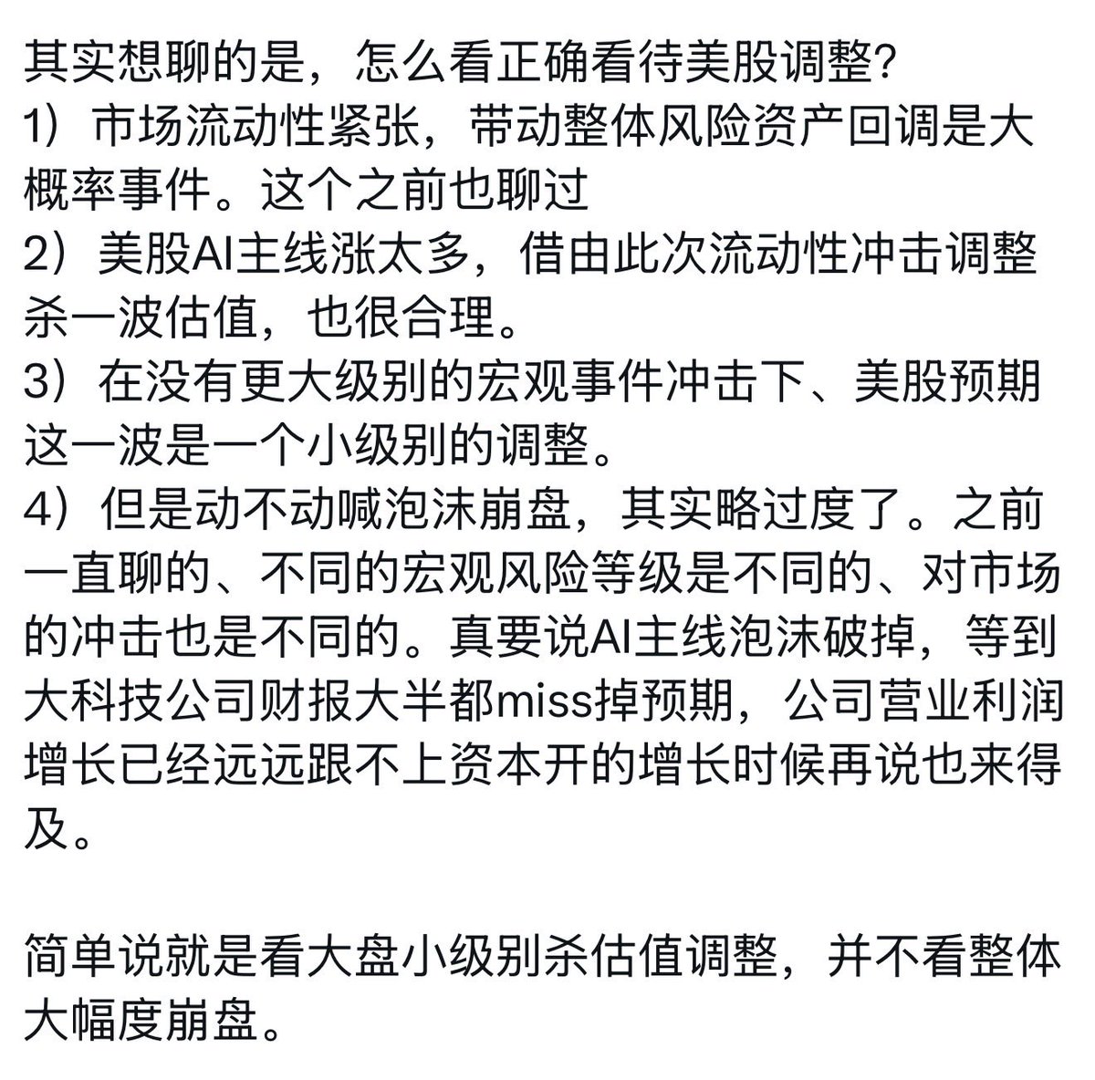 在周三“春劫行情”的推文里聊到:“美股大盘特别是纳指横盘了三个月,深层次还是缺乏足够强向上催化剂,实质上说美股的主线AI还需要点时间形成更大范围的迭代。正常来说向上不能突破那就向下寻找支撑,对于个股来说业绩好但不够炸裂那就杀估值,业绩有瑕疵就得杀业绩了。