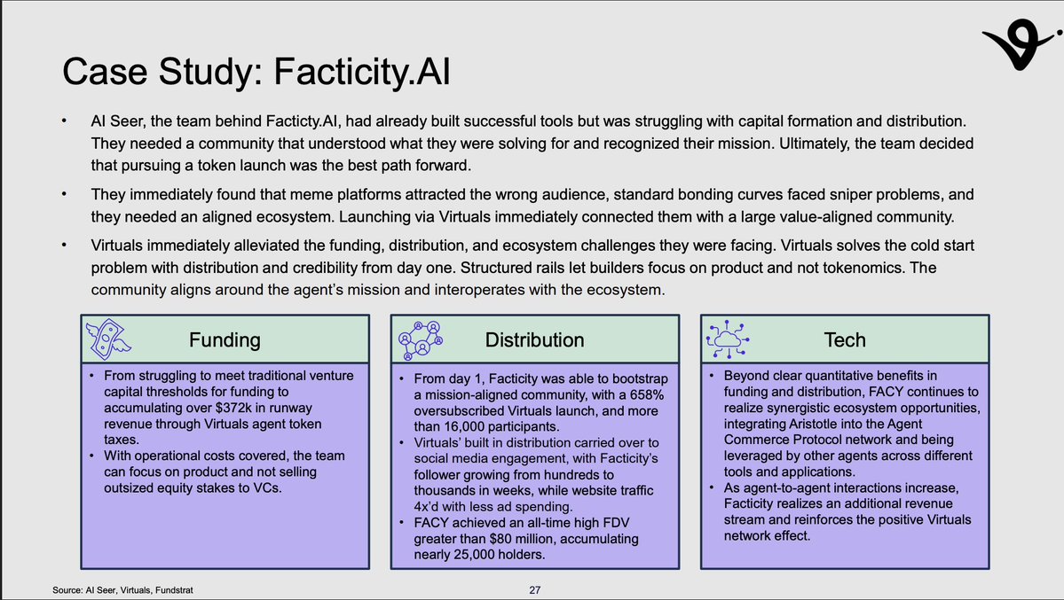 @fundstrat 报告中提到 $FACY 和 $PREDI 并非偶然,它们是整个 @VirtualsAI 生态系统中表现最好的产品,在所有 Genesis 代理中具有最高的投资回报率