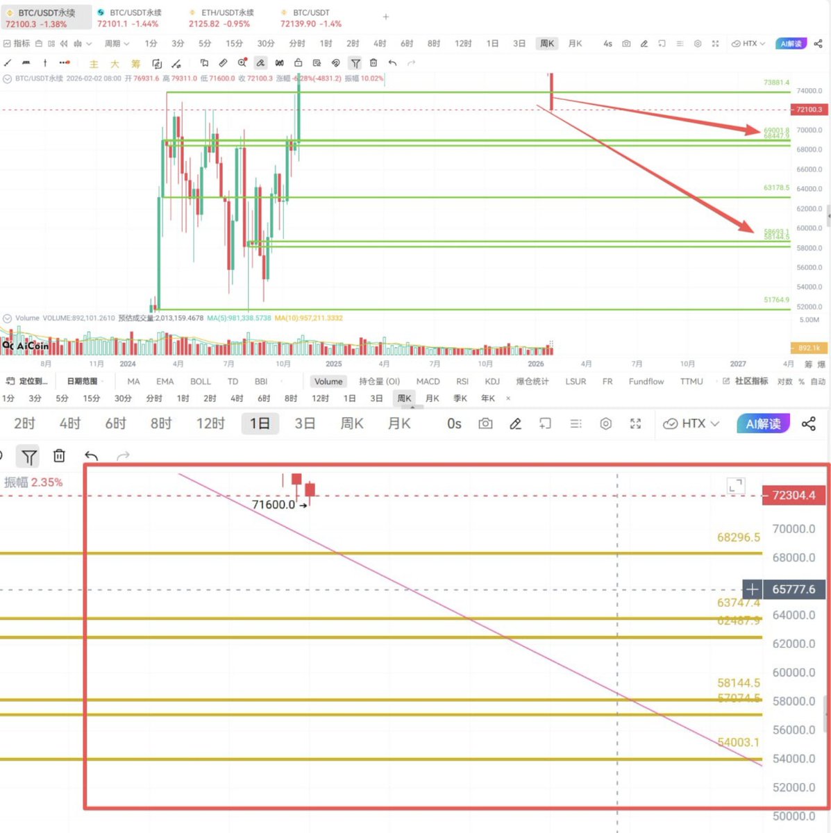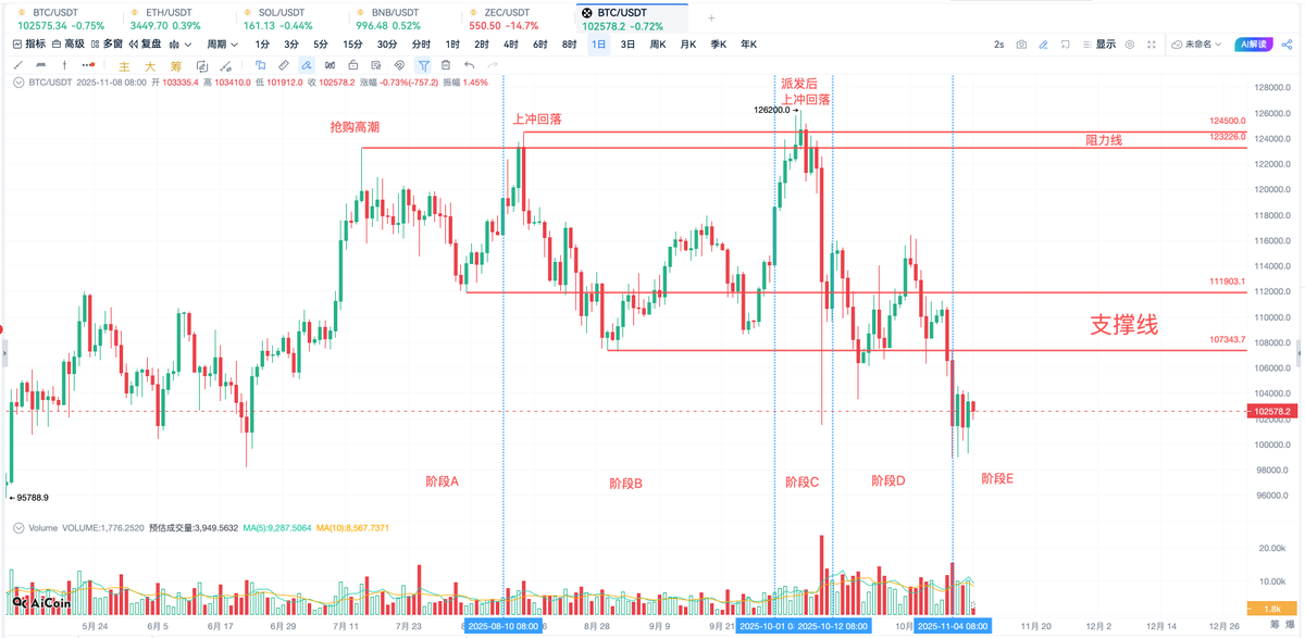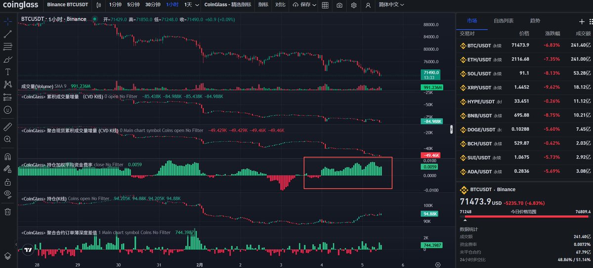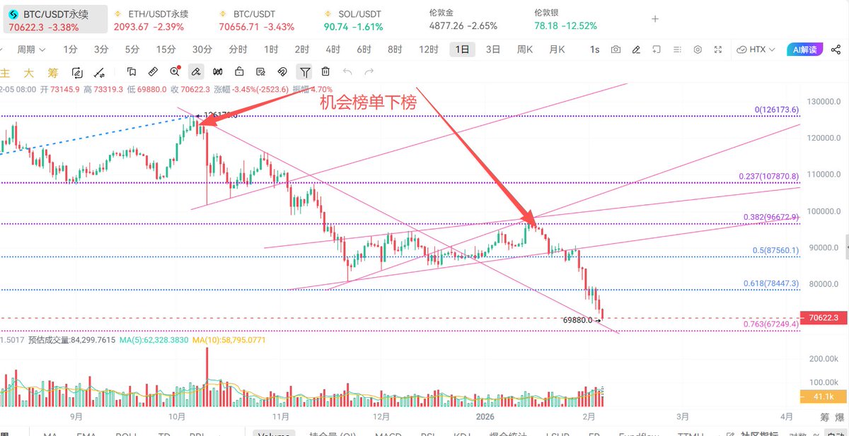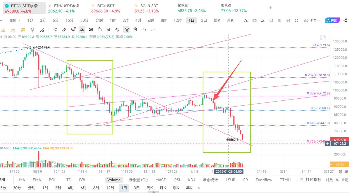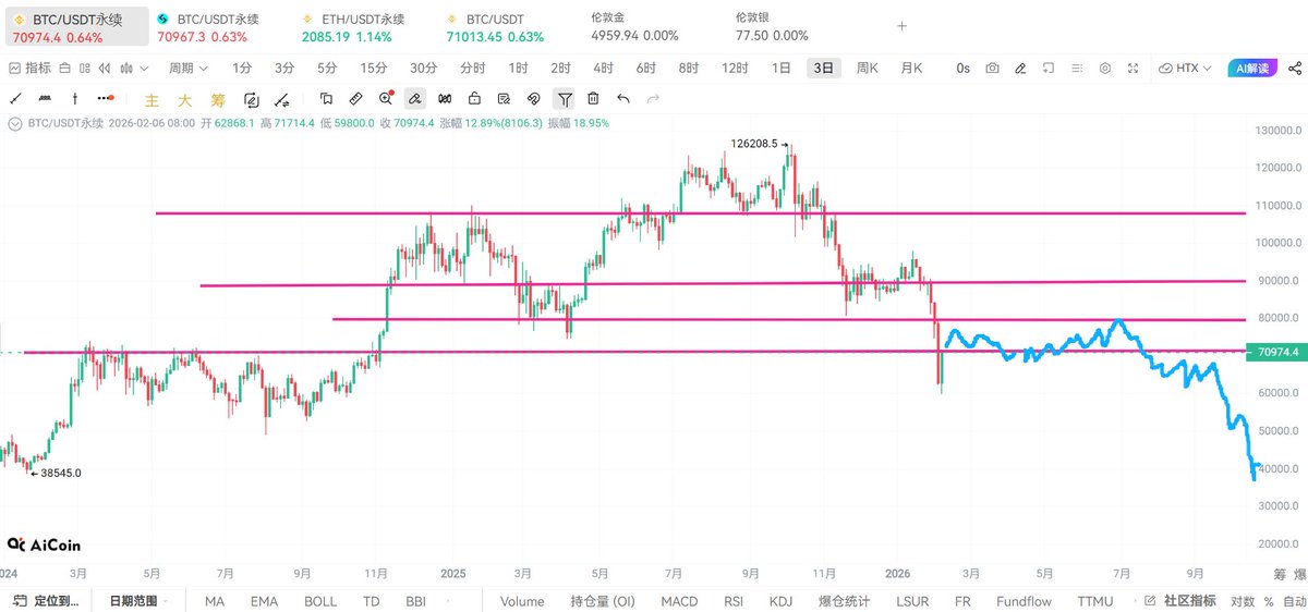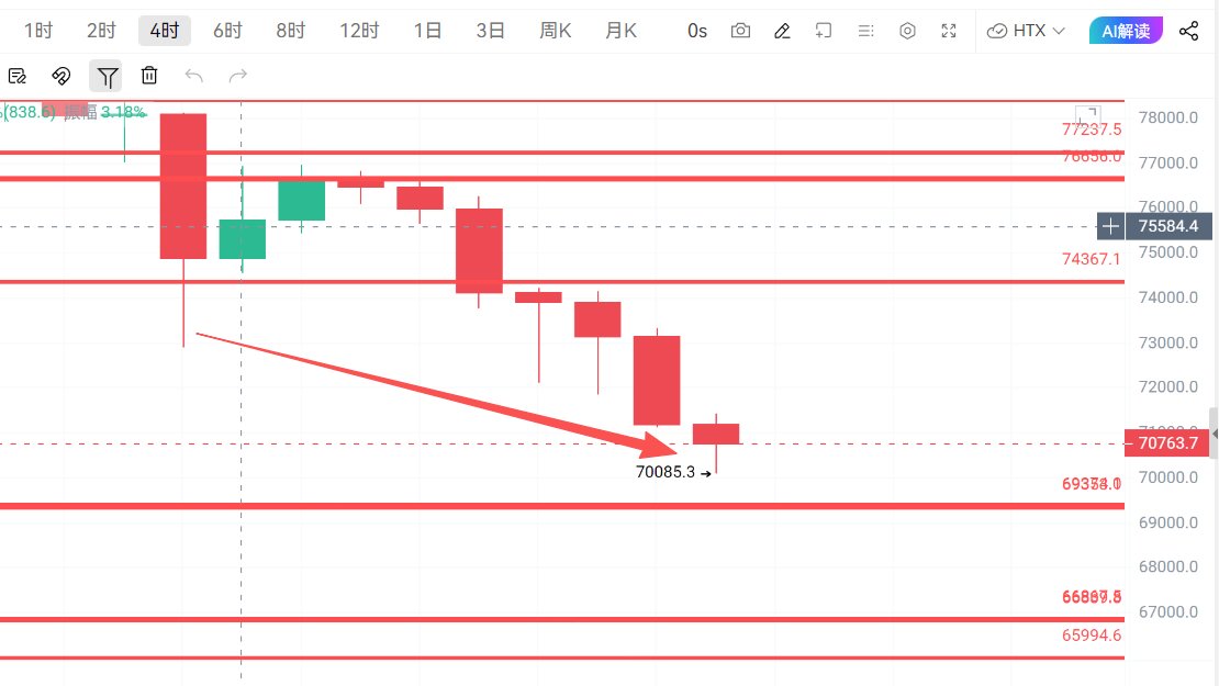 从几个月前我一直强调,牛市结束了,主力已经派发了,后面就是找强支撑位做反弹,8万位置跌破了就看69000附近,这不很快就来了,不用着急,今天继续分析盘面和点位。