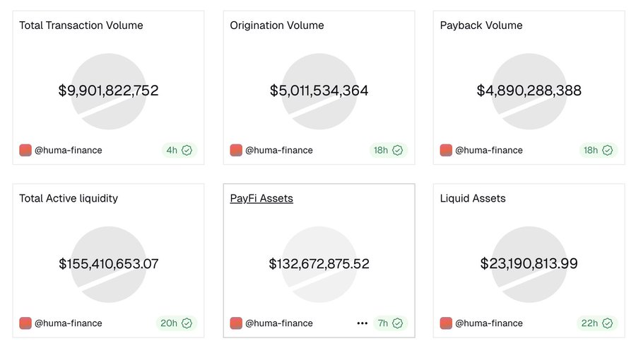 @humafinance Finance 是 Solana 生态中专注于 PayFi赛道的头部协议,旨在通过去中心化方式为跨境支付、卡结算和贸易融资提供实时流动性。项目拥有豪华的融资背景(4630万美元总融资),业务规模惊人(累计交易量 97亿美元),代币经济呈现高资本效率(TTV/FDV 比率 221倍)。近期与Qiro战略合作,引入企业级信用评估基础设施,扩展贸易金融业务