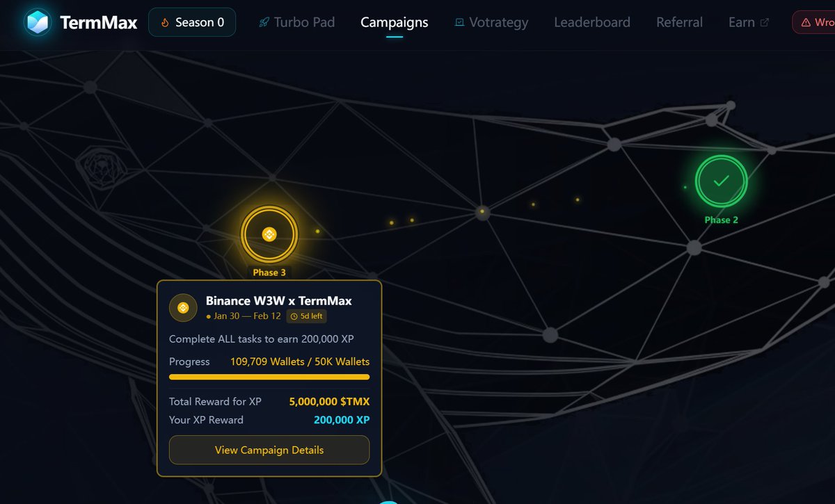 2.12号termmax @TermMaxFi 的币安钱包活动就结束了(签到5天)