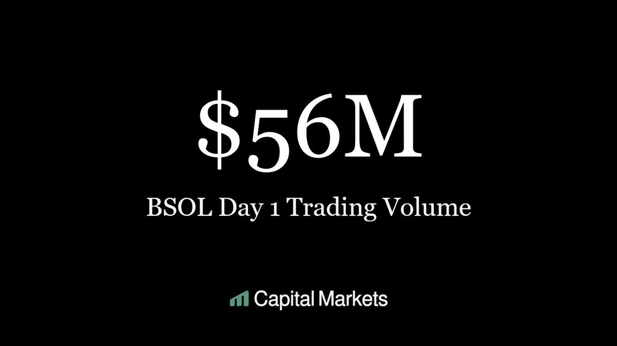 Bitwise 的 $BSOL ETF 创下 2025 年新高,第一天交易量达到 5600 万美元,超过了今年推出的所有 ETF。