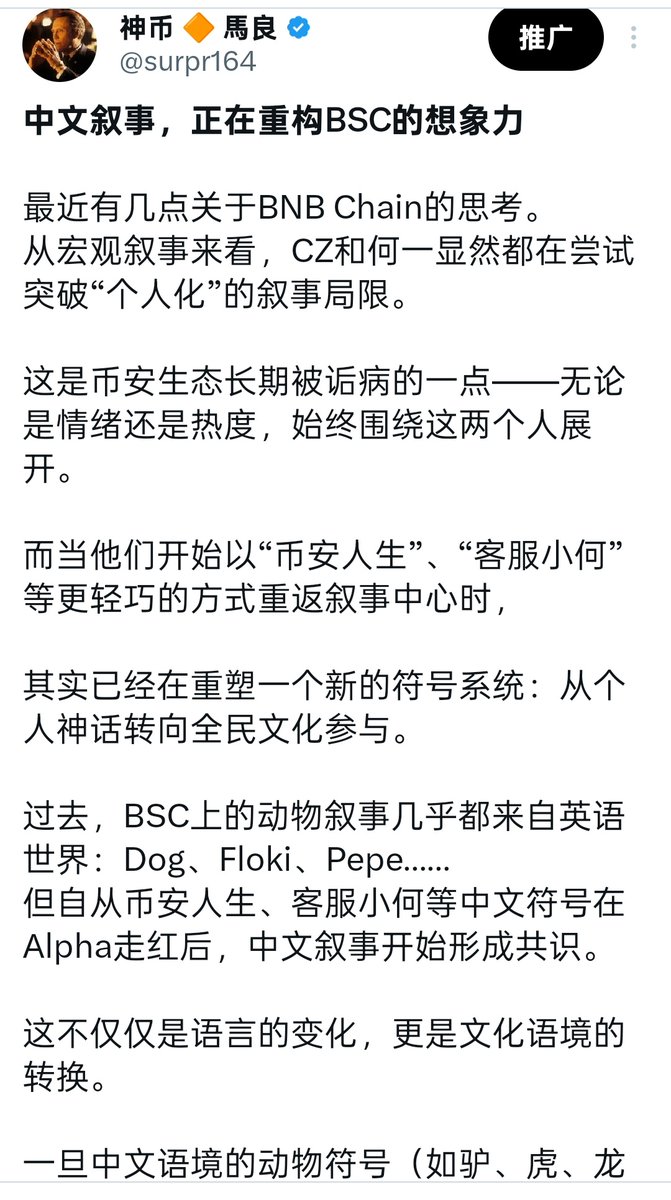 但自从币安人生、客服小何等中文符号在Alpha走红后,中文叙事开始形成共识。