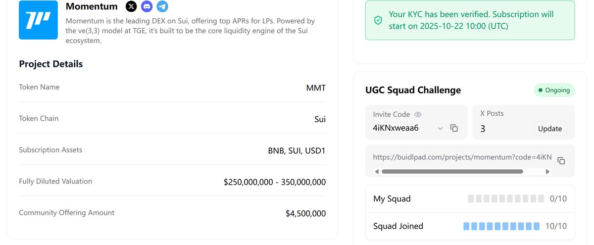 重点关注一下社交方面的任务,这次 Momentum联合Buildpad @buidlpad 会拿出 30%的打新额度会给社交贡献的人,所以这个是大头,需要重点弄