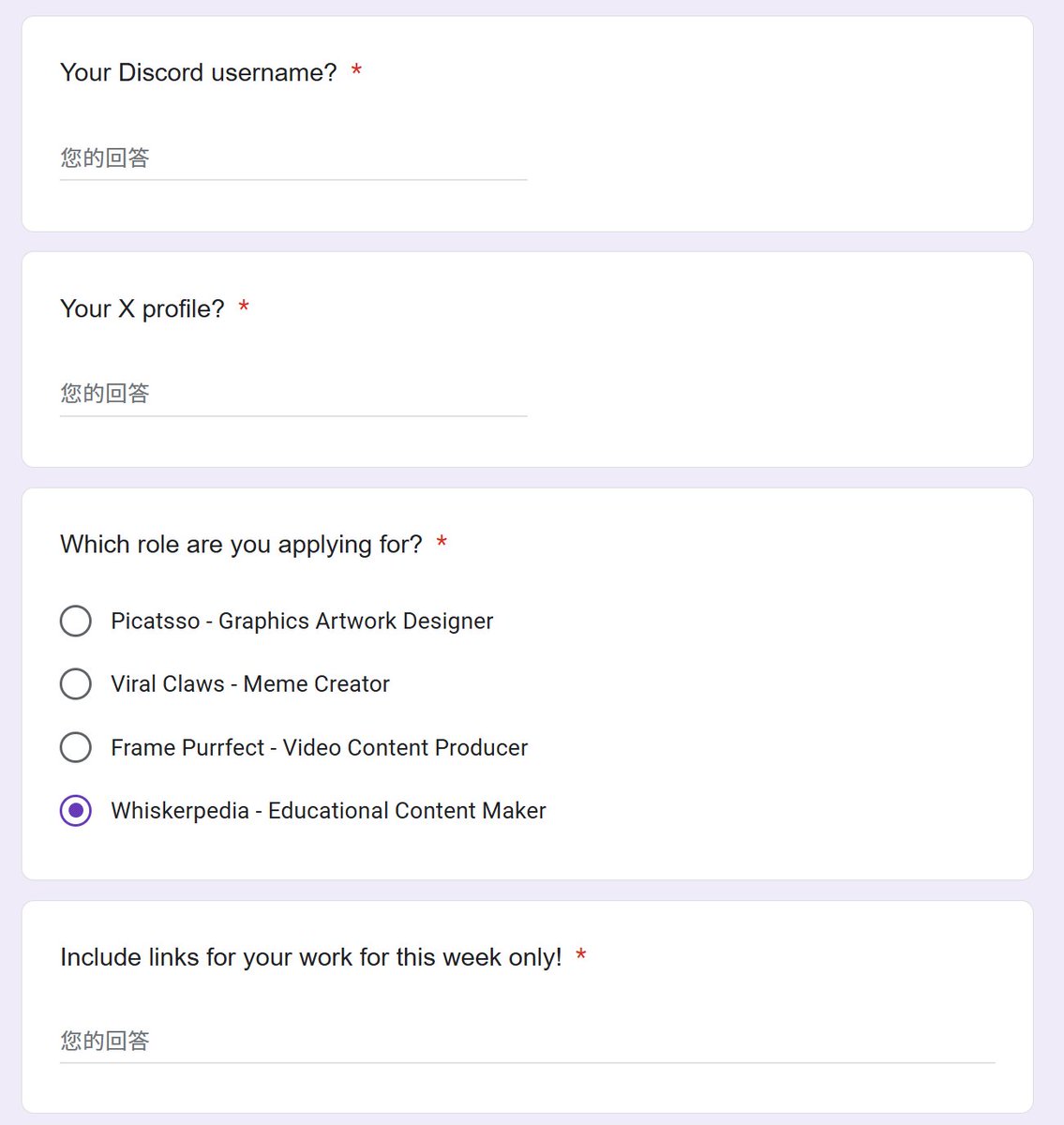 表单三个需要重点关注的地方:你的DC名称、你的X名称、你的内容创作链接