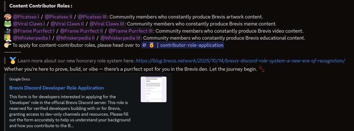 周六到了,兄弟们,Brevis @brevis_zk 可以提名DC角色了,我目前只专注于内容创作角色,目前内推创作分为4个角色: