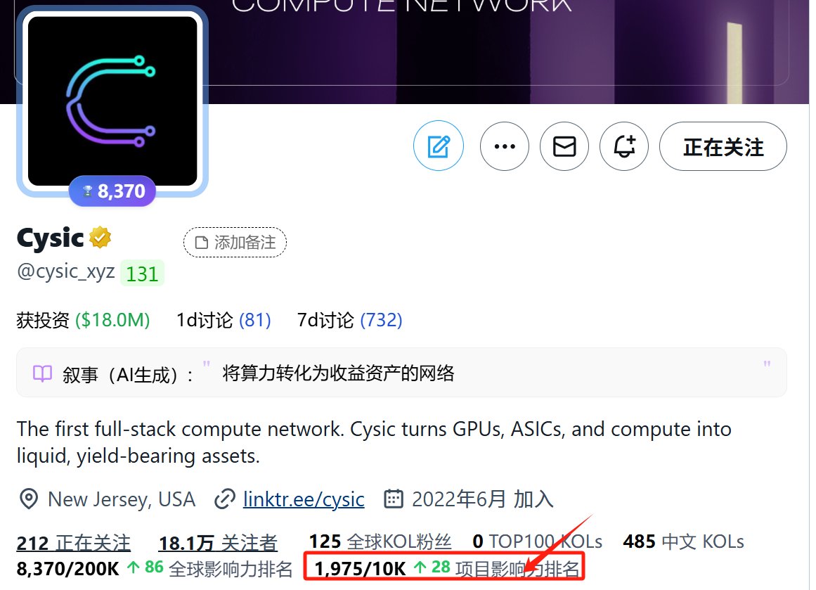 Cysic @cysic_xyz 作为待发币的项目中 质量上乘的项目,本次中国行应该也是为TGE造势,同时通过Xhunt项目指数,可以看到Cysic 在项目中的排名已经来到了 1,975/10K